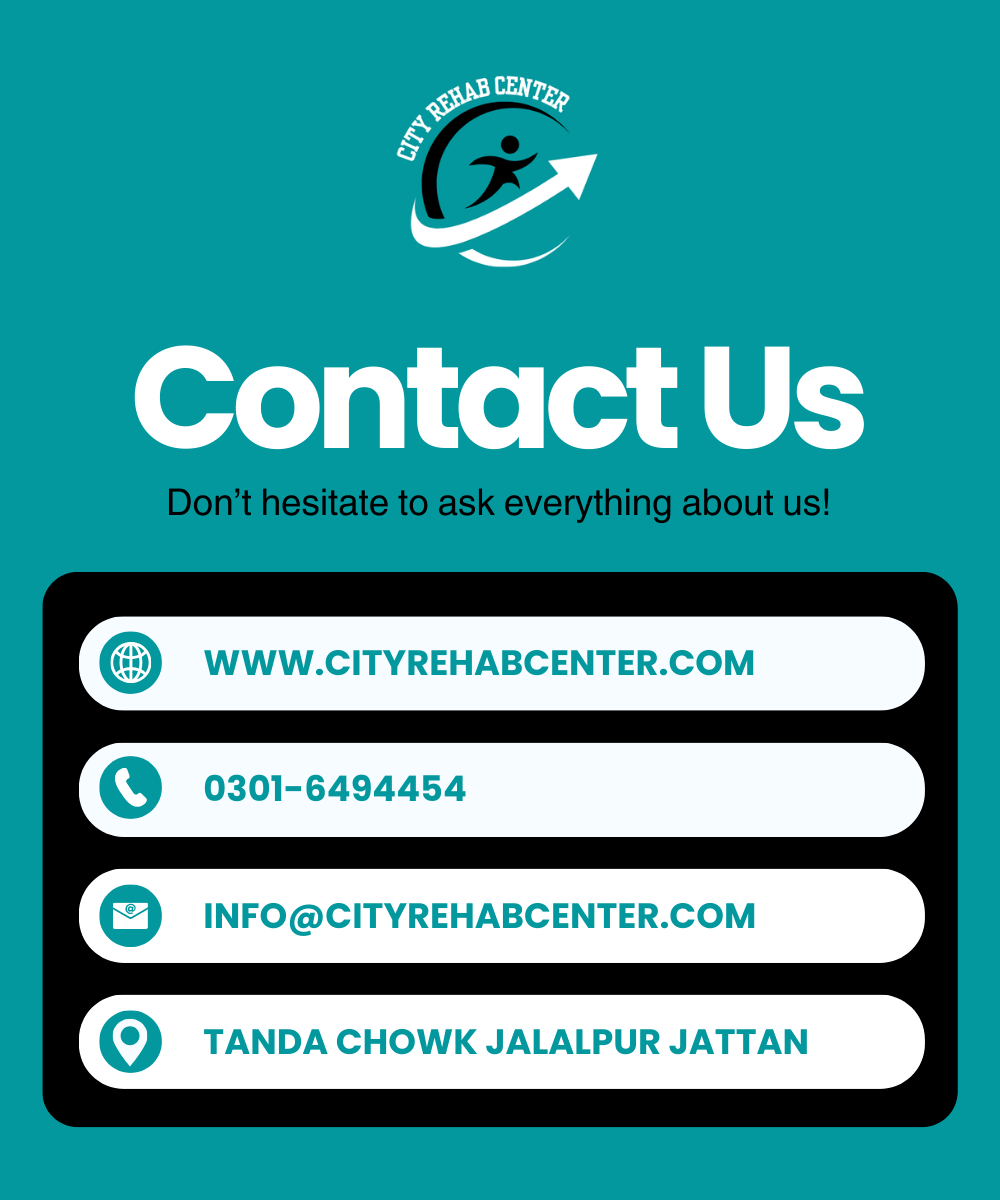 Simply call us at 0301-6494454 or visit City Rehab Center during working hours.